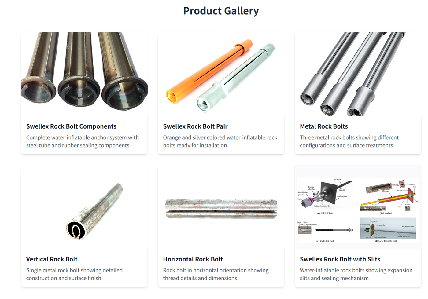 High-performance Swellex rock bolts for underground mining, tunneling, and geotechnical applications. Custom lengths, diameters, and accessories available.